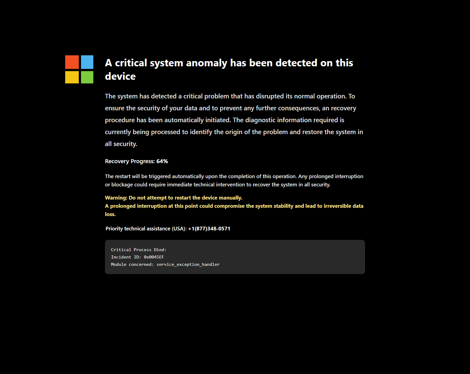 Contact support. Our engineer will guide you through the removal process over the phone. Your computer has been disabled. Defender SmartScreen now prevents unrecognized applications from appearing. Running this application may put your system at risk. Contact support +1(877)348-0571